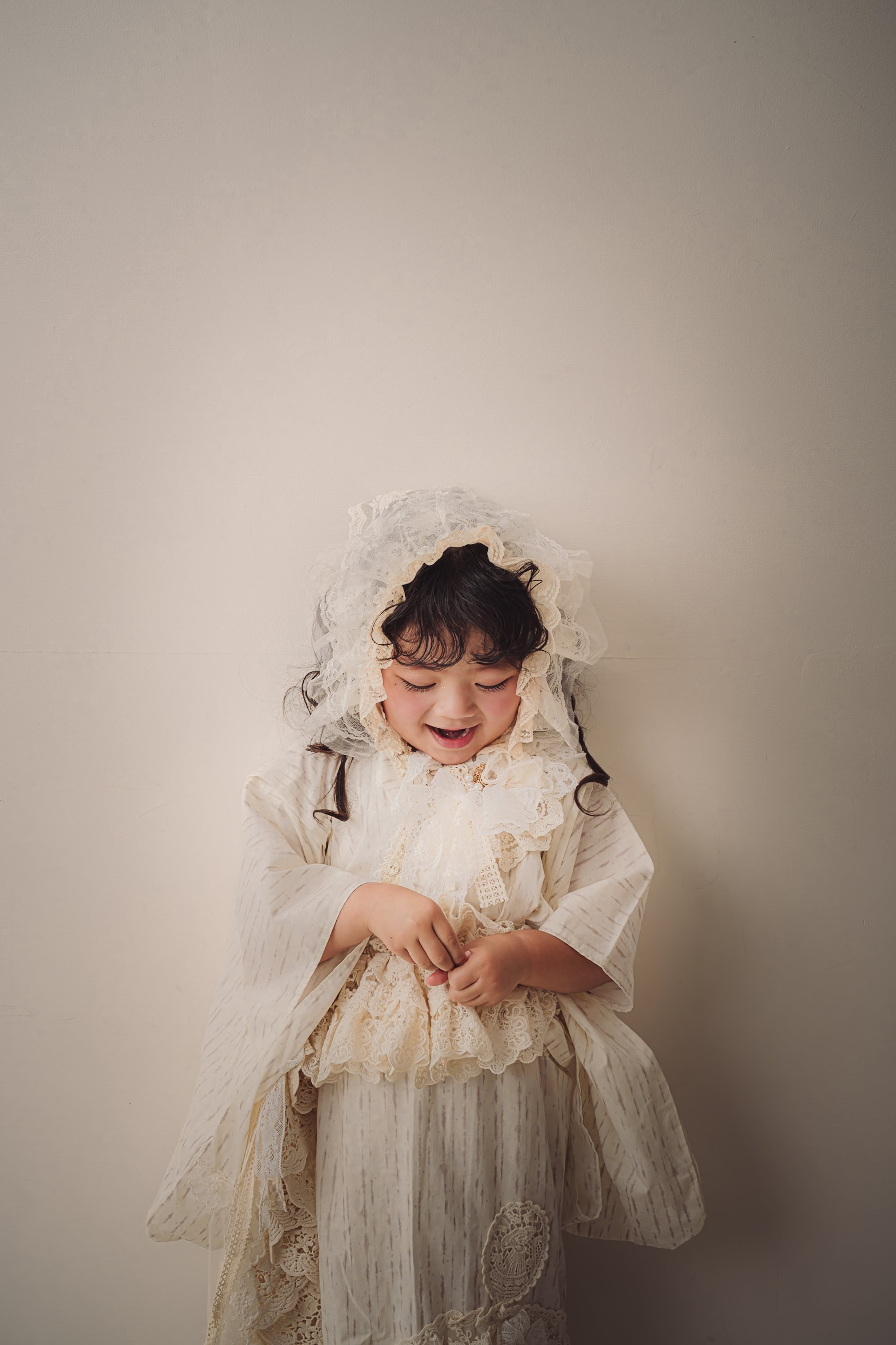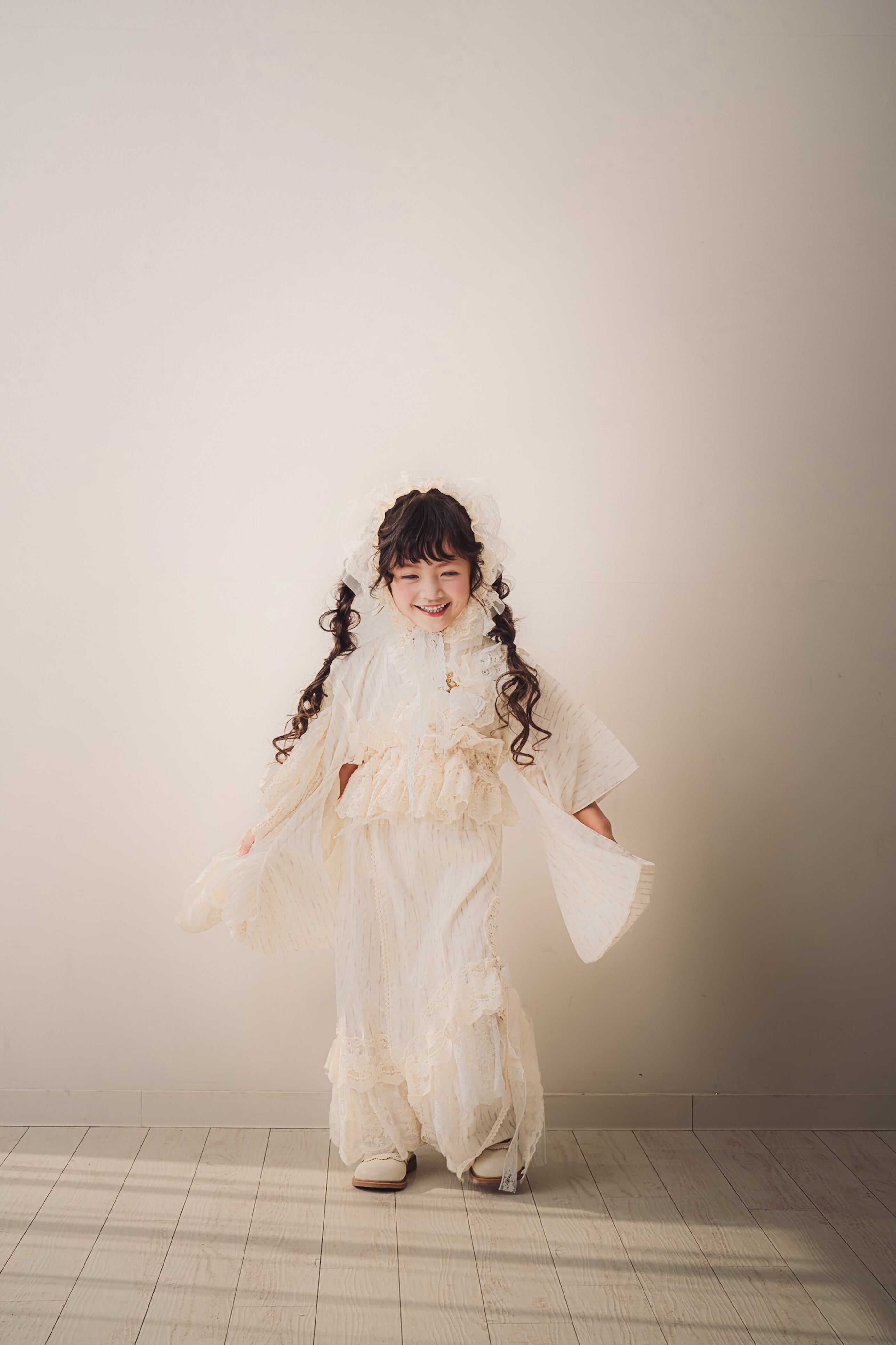 やわらかな生成りの着物に、