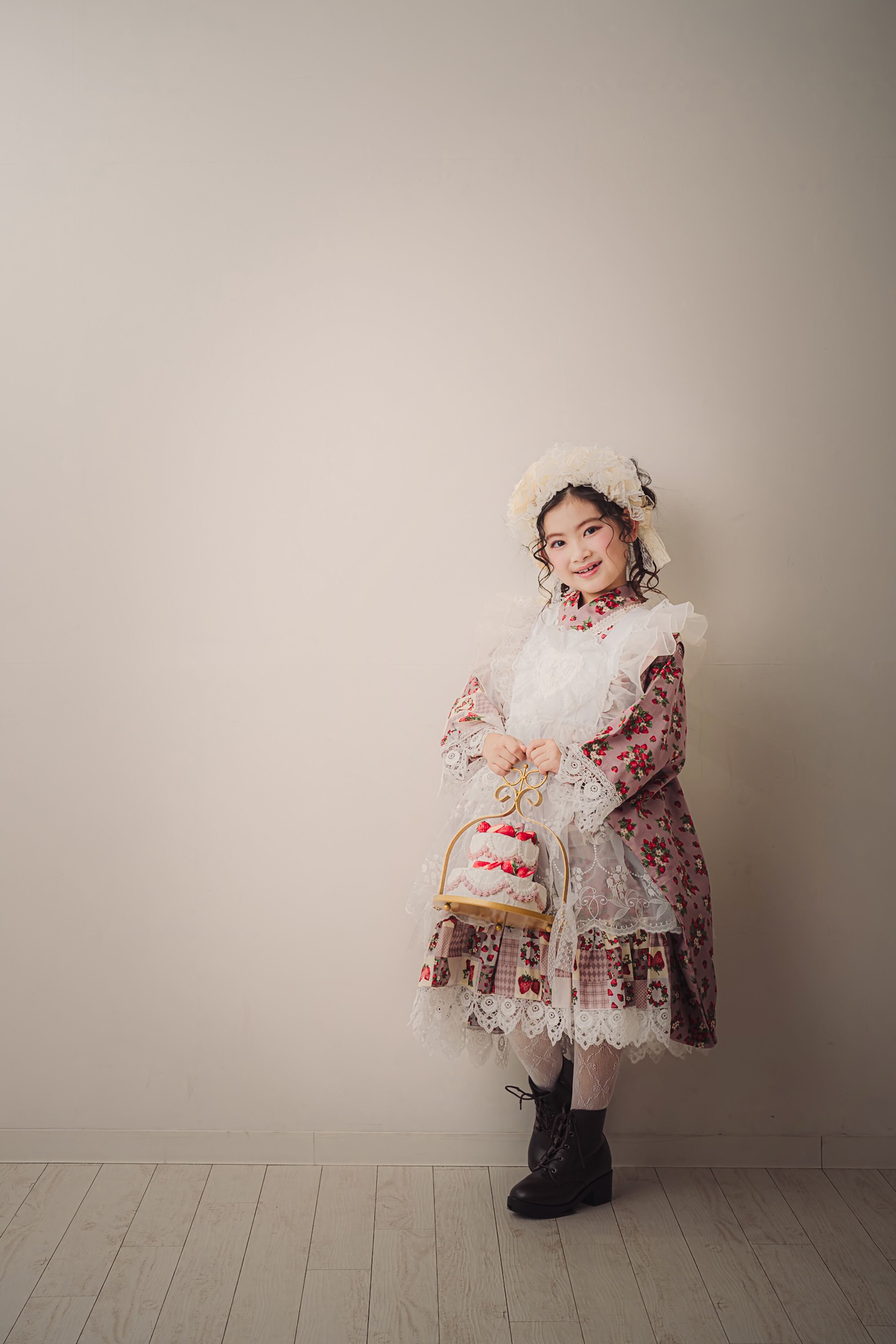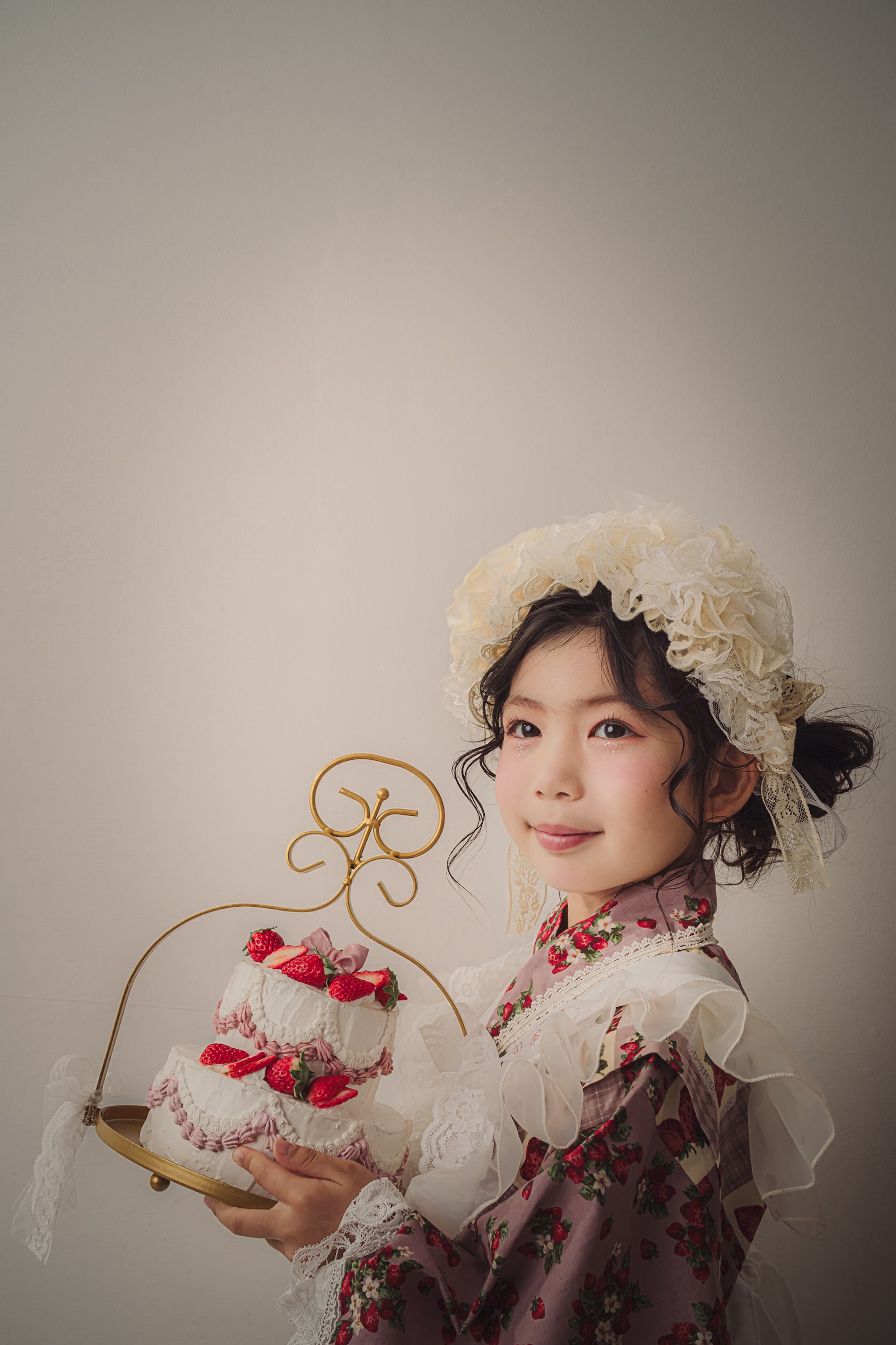 本物そっくりのケーキを手に、とびきり可愛らしい印象に