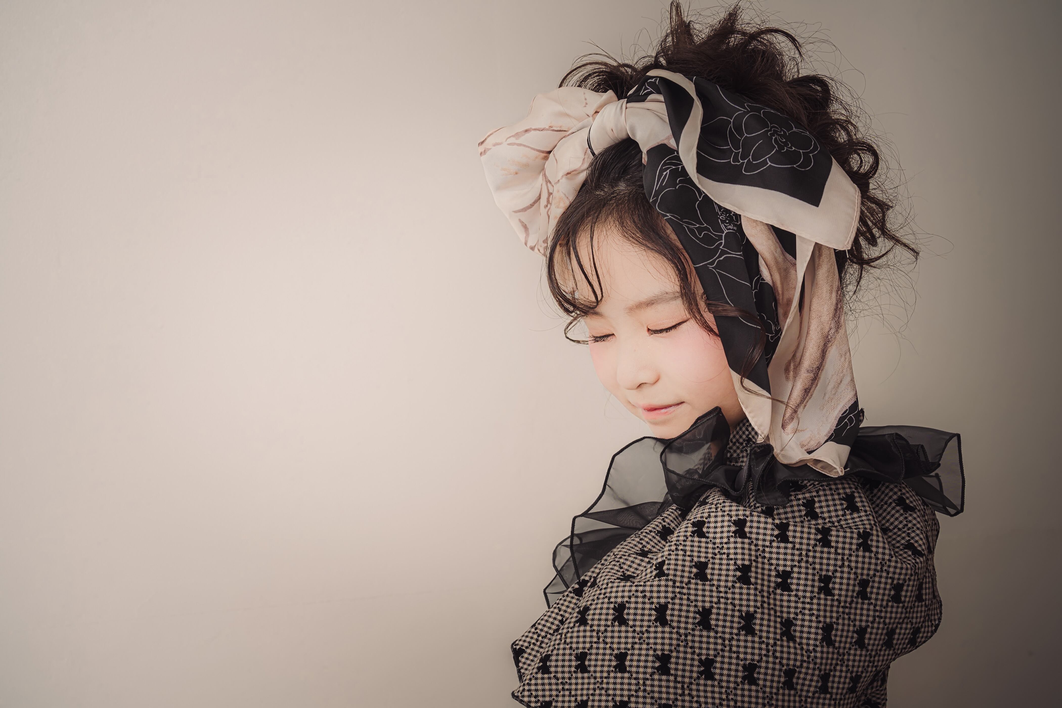 仕上げに、スカーフでつくった大きなリボンを